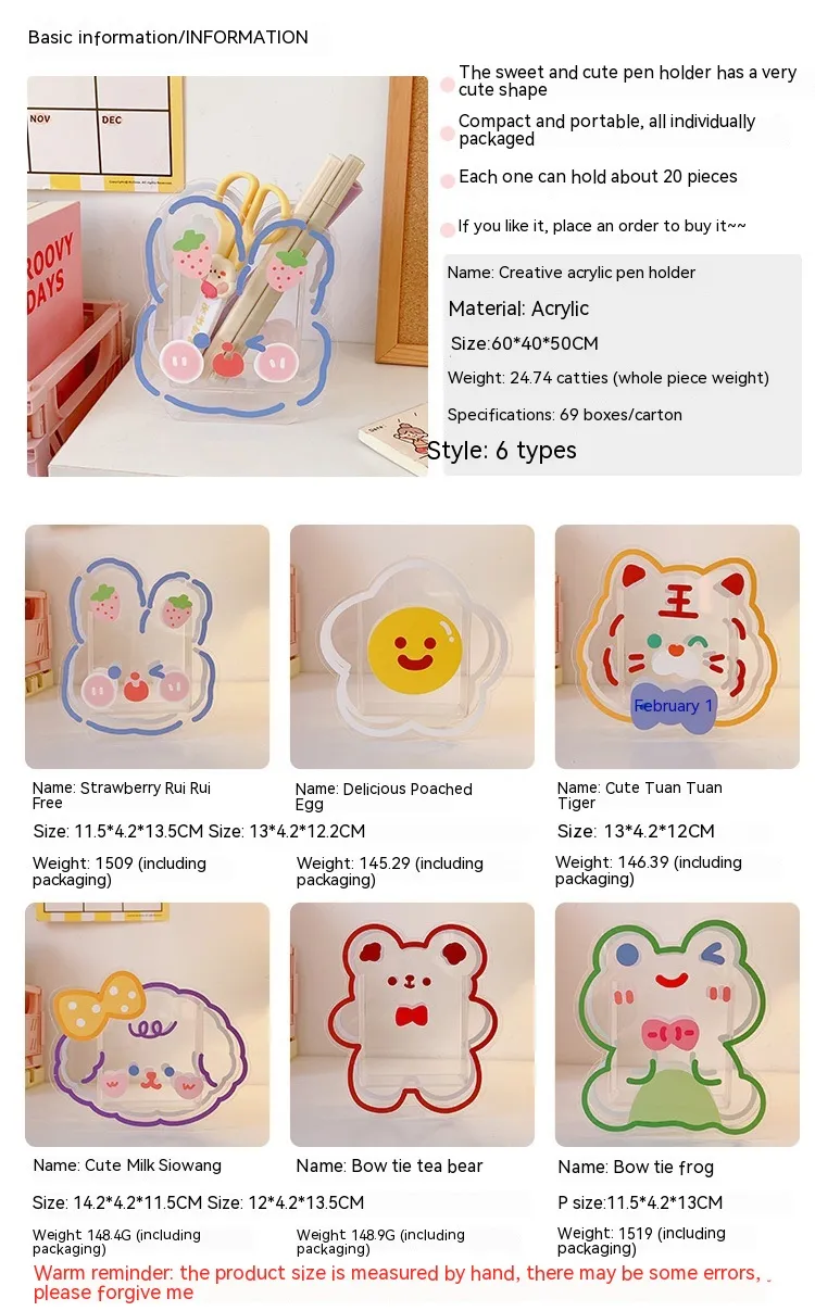 Color: 1# strawberry Ruirui rabbit, 2# delicious poached egg, 3# cute group tiger, 4# cute milk Siwang, 5# bow Tea fork bear, 6# little frog