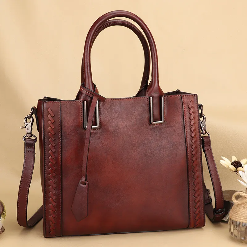 Women's First Layer Cowhide Handmade Hand-held Messenger Bag