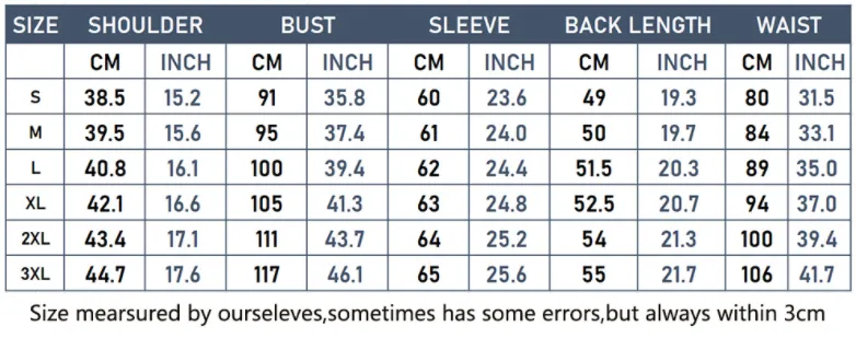 Size: S/M/L/XL/XXL/3XL