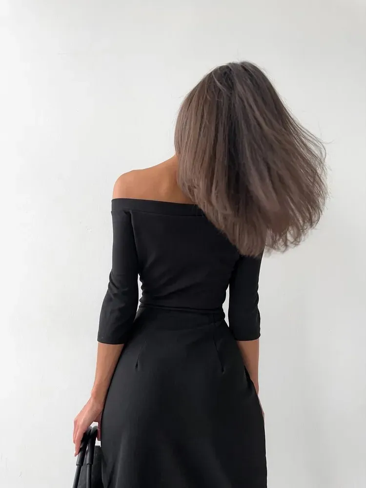 Designed for women who appreciate both style and comfort, this dress is a must-have for any wardrobe. The combination of the off-neck