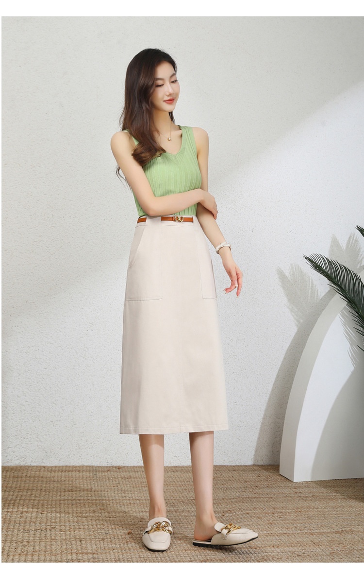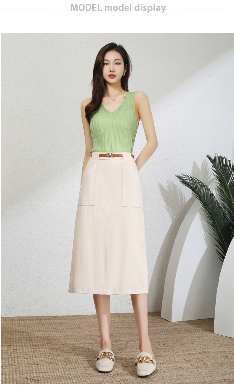 sophisticated silhouette, this midi skirt features a graceful A-line cut that flatters a wide range of body types, creating a smooth and
