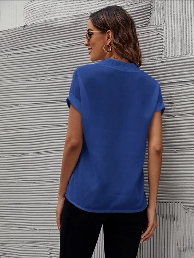 Women's Short-sleeved V-neck Shirt Summer Casual Solid Color Shirt