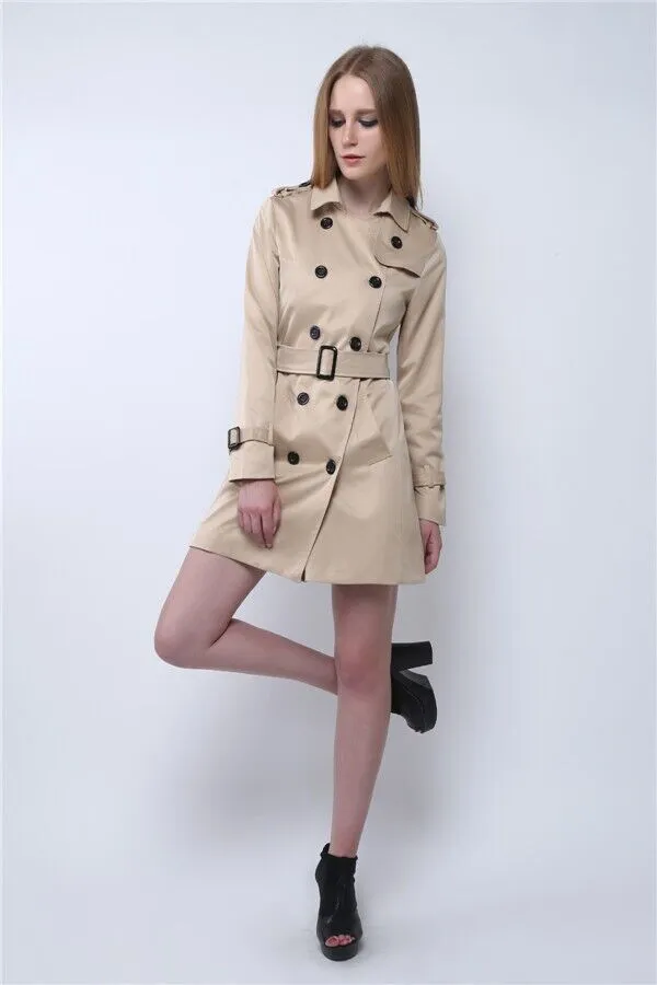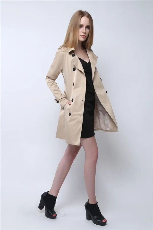Features of the Women's Slim-fit Elegant Double-breasted Belt Trench Coat