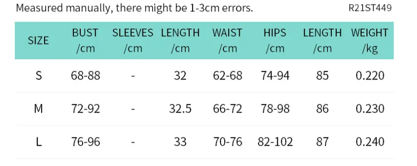 allow 2-3cm differences due to manual measurement.