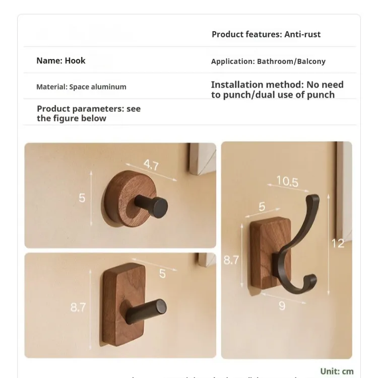 Color: Nordic walnut single hook type A (Punch-free), Nordic Walnut 3 Hook Type A (Punch-free), Nordic Walnut 5 hook-type A (Punch-free),