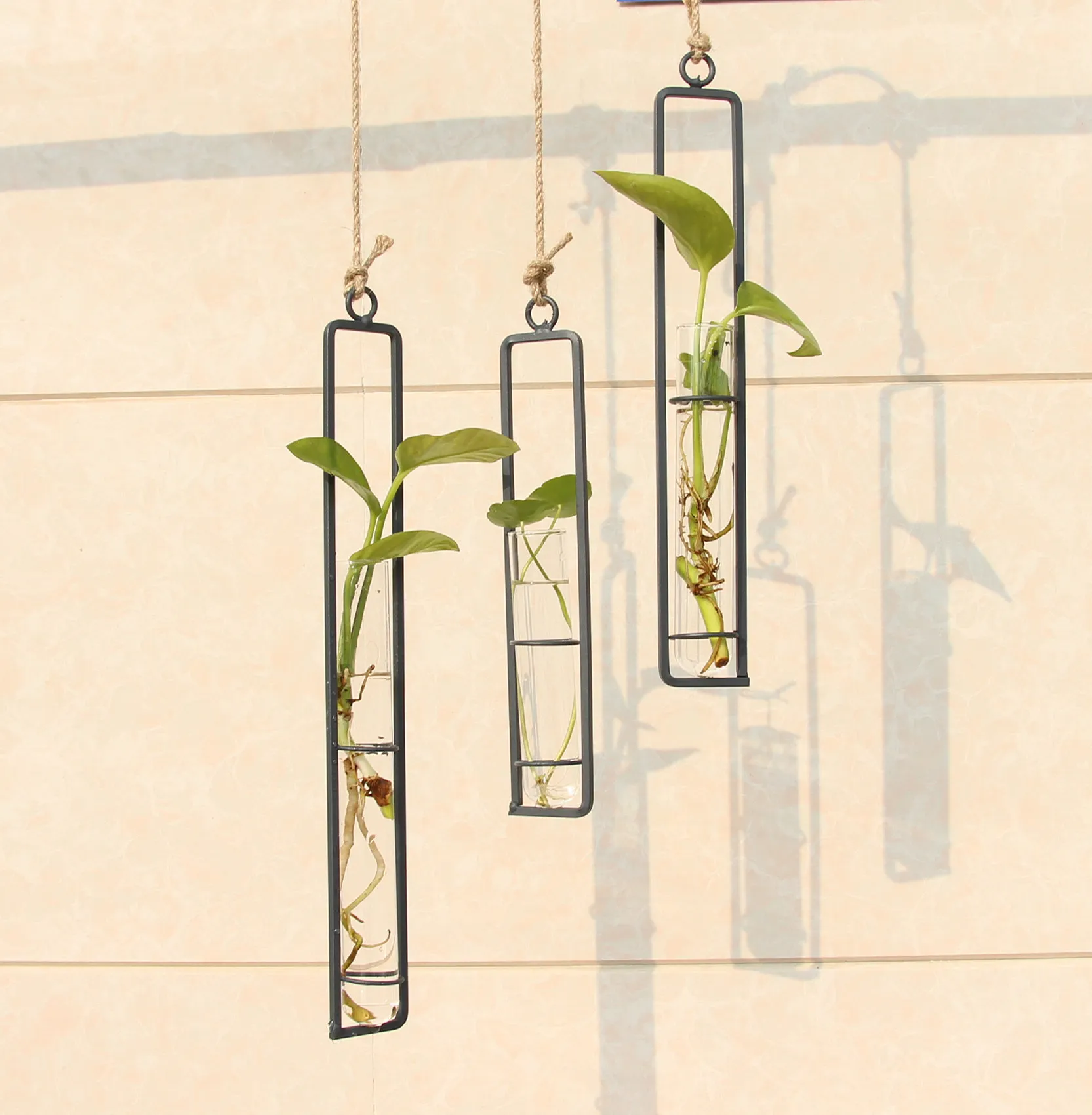 Shop the Wrought Iron Glass Hydroponic Vase for stylish, soil-free plant growing. Perfect for indoor gardens, office decor, and as a unique gift for plant lovers.