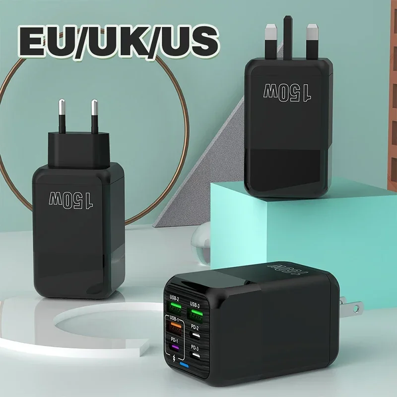 The Xiaomi 150W 6-port fast charger wall adapter supports PD and QC 3.0 for super fast charging. Compatible with iPhone, Samsung, iPad, Xiaomi, Huawei, OnePlus, and more, it ensures efficient charging for multiple devices simultaneously.