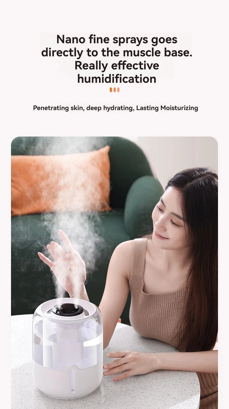 Compact and USB-powered, the humidifier can be used in various settings, from desktops to bedside tables, offering flexibility and ease of use.