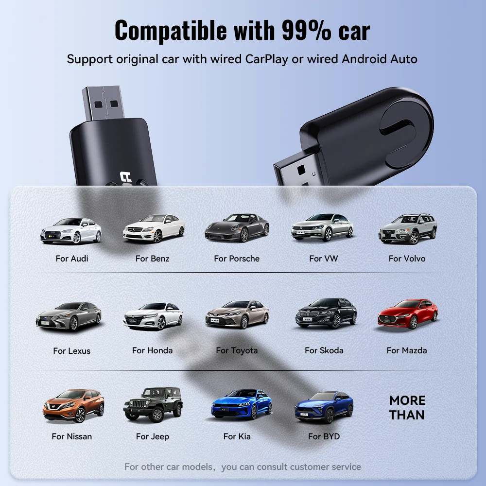 Seamless Wireless Connectivity: Transition from wired to wireless CarPlay and Android Auto effortlessly, enabling automatic