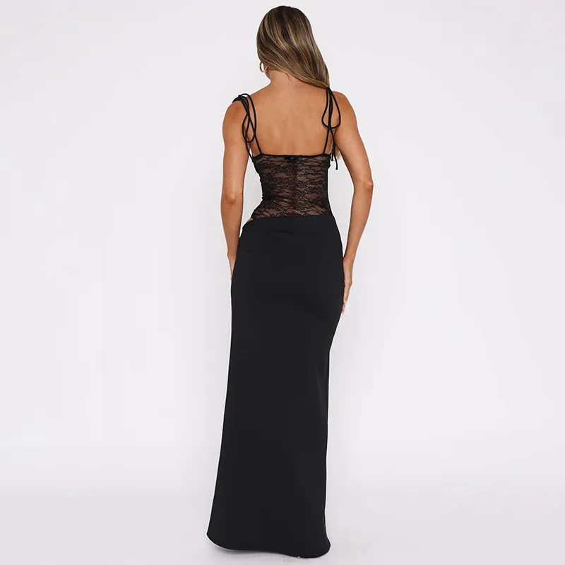 Y2K Lace Suspender Dress – Sexy Lace Long Dress for Party, Evening, Club, and Beachwear for Women