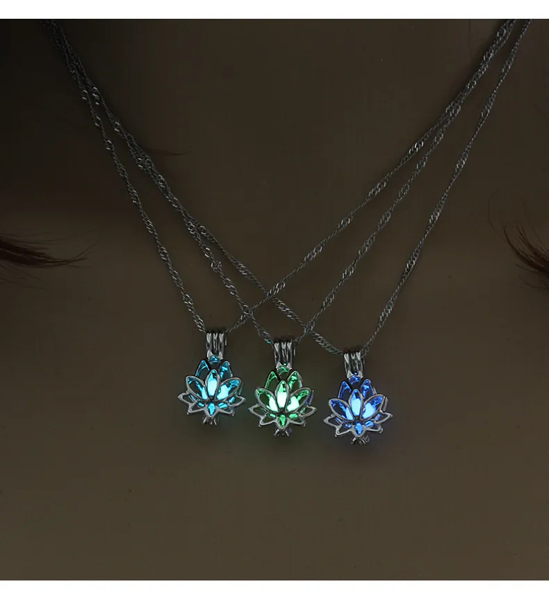 Crafted with intricate detail, this pendant features a luminous lotus design that glows gently, making it not only a beautiful accessory but also one that holds meaningful symbolism. The photo box pendant design offers a unique element, adding versatility and charm to this elegant necklace. Perfect for daily wear or as a special gift, this necklace brings both beauty and spiritual significance to any look.