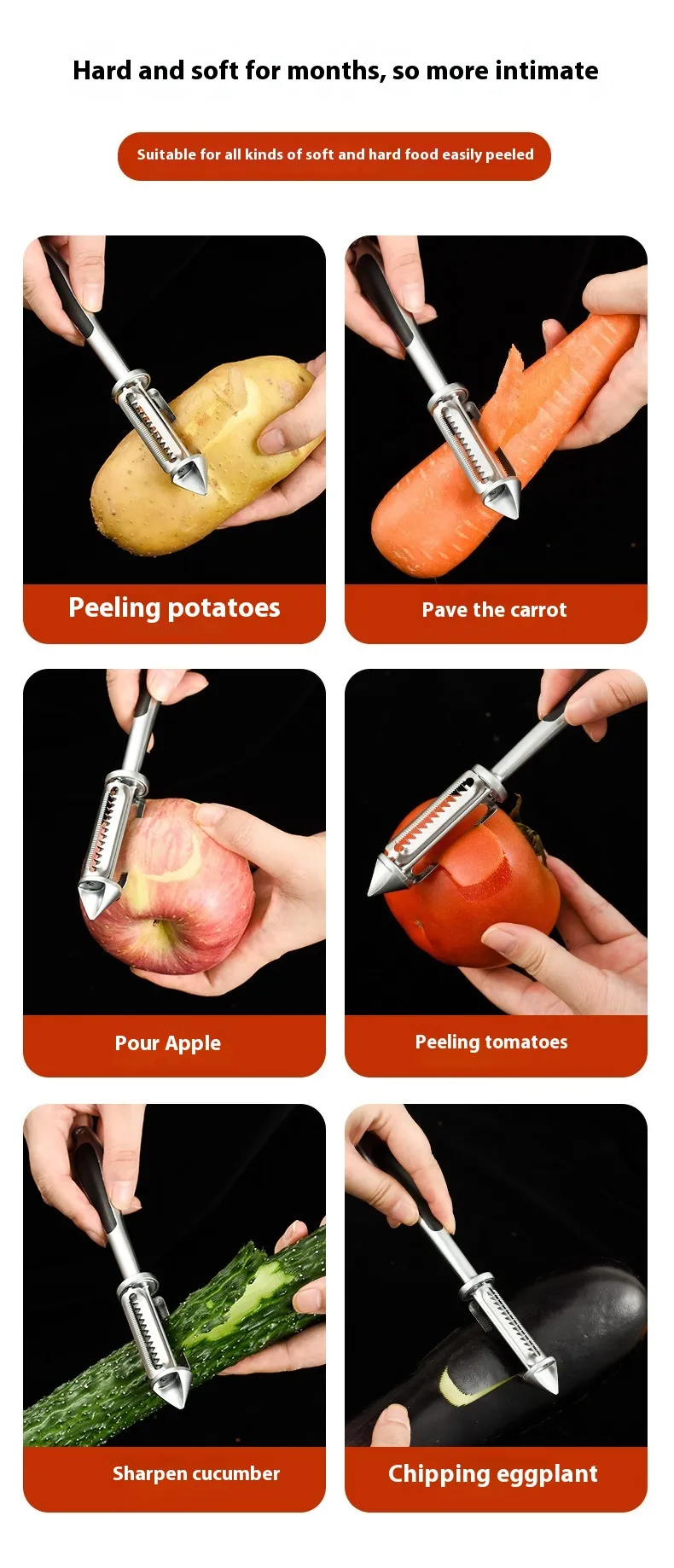 The Zinc Alloy Household Multi-functional Double-sided Peeler is a must-have tool for any kitchen. Combining durability, versatility, and ergonomic design, it offers effortless peeling and slicing for a variety of fruits and vegetables. Whether you're preparing a quick meal or tackling a large batch of produce, this peeler ensures precision, speed, and comfort with every use. Make meal prep easier and more efficient with this high-quality, multi-functional kitchen gadget.