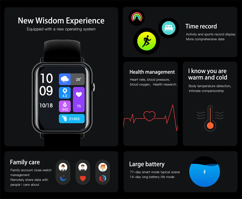 The heart rate monitor, sleep tracker, step counter, and sport modes give you detailed insights into your health and fitness progress. This smartwatch empowers you to take control of your wellness and track your goals with precision, making it an excellent choice for fitness enthusiasts who want to stay on top of their health.