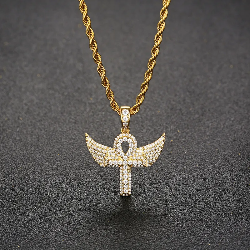 Upgrade your spiritual jewelry collection with the Zircon-Encrusted Angel Wing Cross Pendant in Gold – a symbol of faith, love, and protection. Order now and wear your beliefs with pride!