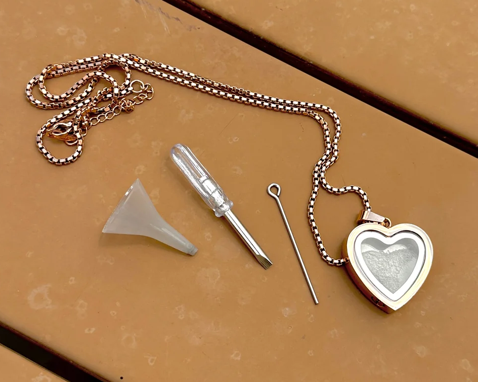 The ForeverIn™ Urn Pendant Necklace is simple to use. Open the pendant via the discreet side screw and carefully insert a small portion of your loved one's ashes or a memento. Once filled, screw the pendant back securely to keep the contents safe. Whether it’s ashes, a small lock of hair, or even a note, the pendant will hold your precious keepsake close to your heart.