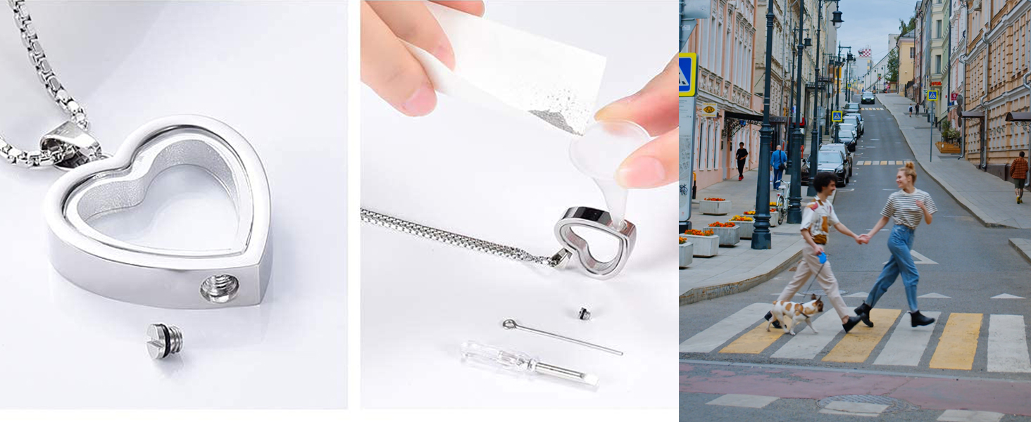 Secure Compartment: The pendant features a secure screw and rubber gasket to tightly seal the ashes or other personal