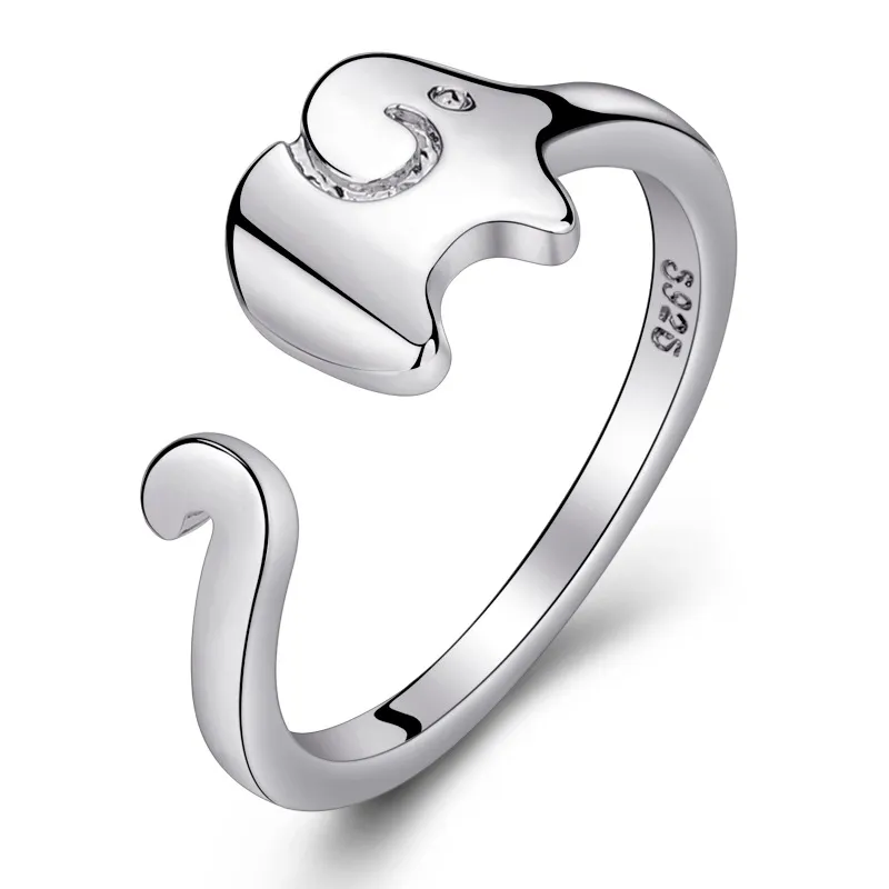 Elegant Ladies Silver Elephant Ring with intricate elephant design, symbolizing wisdom, strength, and good fortune. Crafted from high-quality sterling silver, perfect for any occasion.