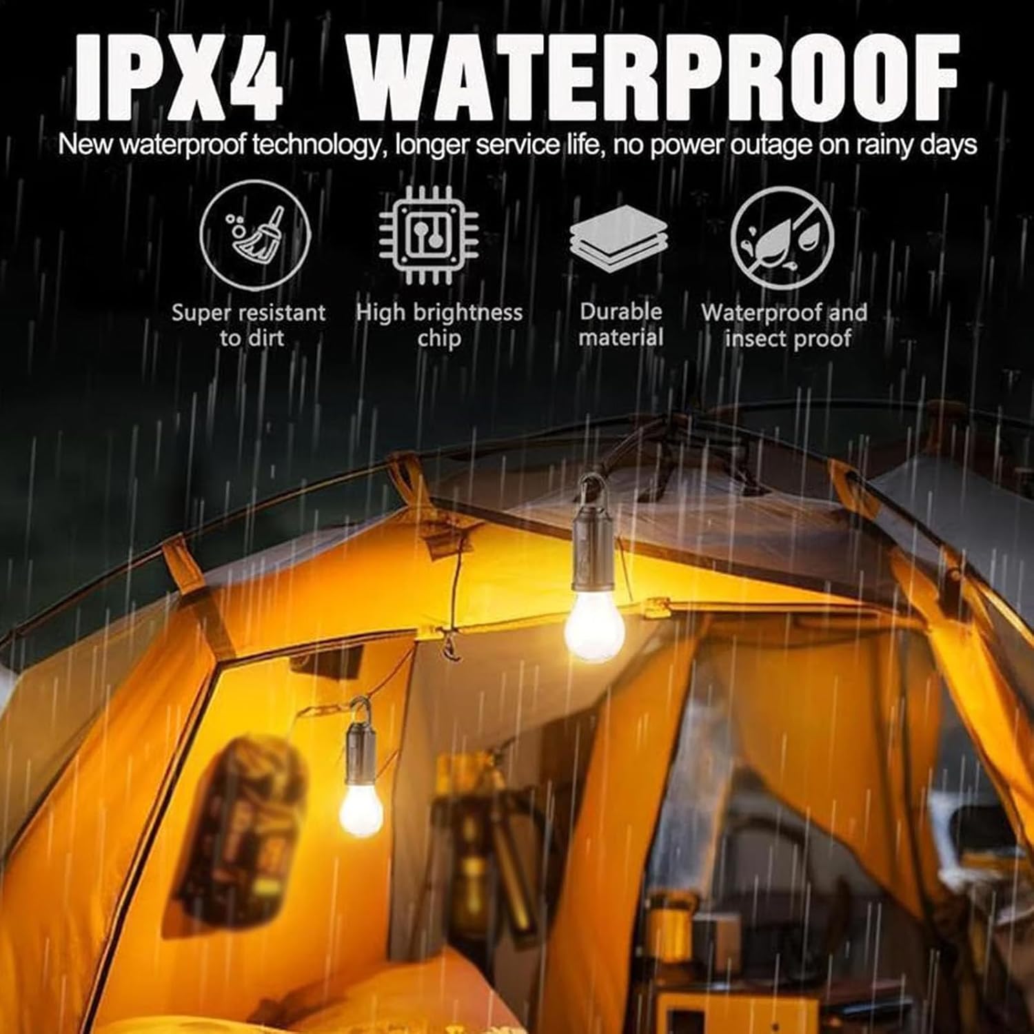 Featuring an advanced IPX4 waterproof design, this camping light effectively resists splashes and moderate rain from all directions,