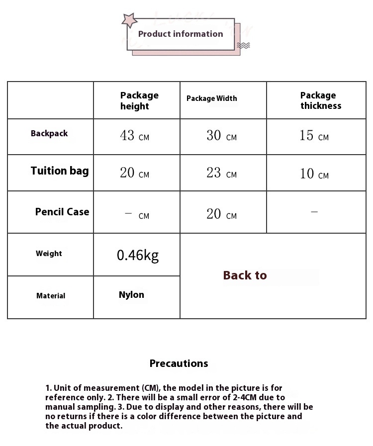 Discover the Girls' Large-capacity Backpack available in the USA! This product is designed with quality and style, perfect for customers seeking the best in the market. Whether you're buying for yourself or as a gift, the Girls' Large-capacity Backpack stands out for its excellent design, durability, and user-friendliness. Shopping online for this product in the USA is easy and convenient, ensuring that you receive a high-quality item at an affordable price. Our products are crafted to meet your needs, providing comfort, functionality, and aesthetic appeal. Choosing the Girls' Large-capacity Backpack means investing in a reliable product that you can count on. Make sure to check out our offers and discounts for U.S. customers, and take advantage of fast, reliable shipping across the United States. We pride ourselves on offering products that exceed customer expectations in terms of quality and affordability. Explore the benefits of owning this fantastic product, and enjoy seamless shopping experiences tailored to your needs. If you are searching for the Girls' Large-capacity Backpack online in the USA, look no further! We bring you a curated selection that reflects the best in style and functionality, ensuring your satisfaction with every purchase. With positive reviews and a track record of customer satisfaction, our products are guaranteed to provide value. Order the Girls' Large-capacity Backpack now and see why so many customers across the USA choose us for their shopping needs.