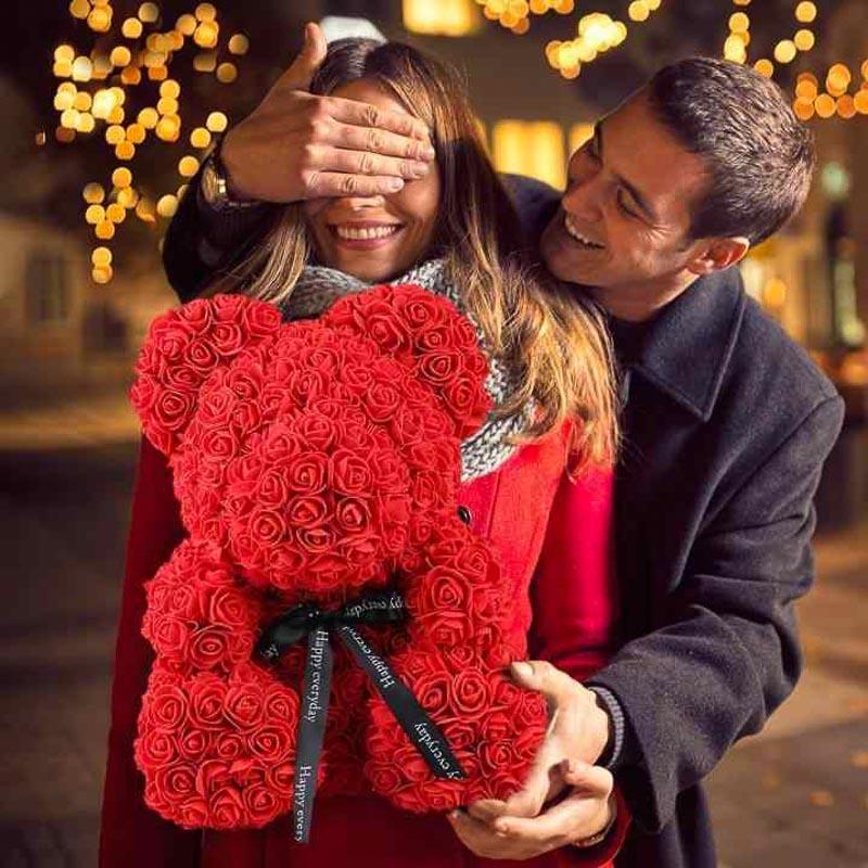 - 👩❤💋👨Give the lady you love a gift made of roses 🌹that will last forever! A gorgeous decorative teddy bear made of soft synthetic roses in a romantic red color.