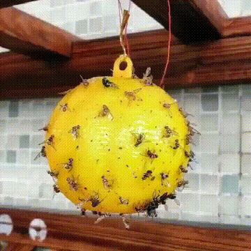 This fly trap features the latest spherical design, with 360-degree coverage and a visual effect that mimics the shape and color of fruit to attract flies.