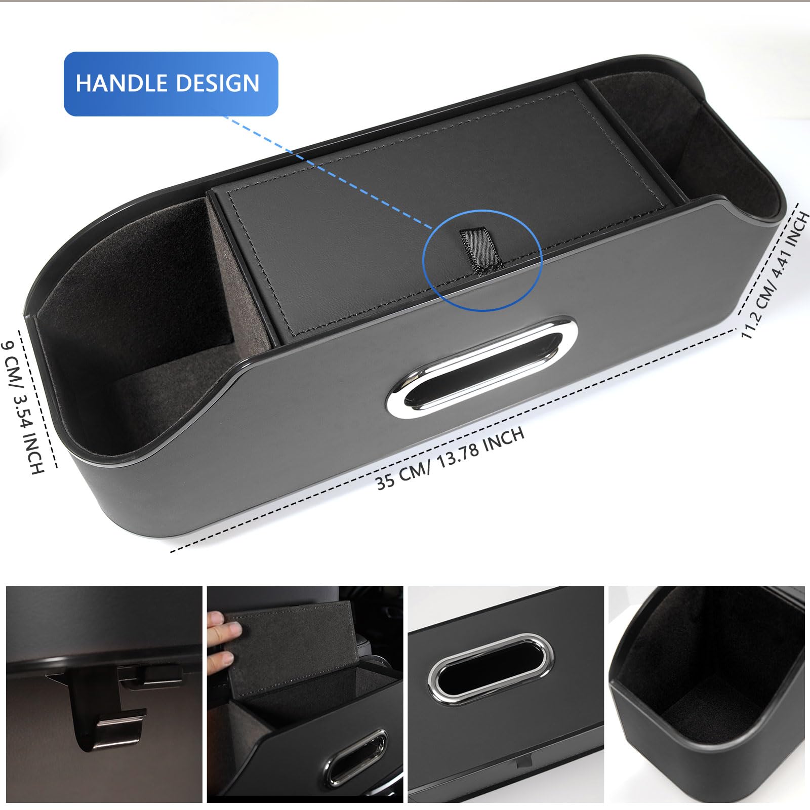 Protect your seats from scratches, spills, stains, scuff marks, mud, dirt and wear and tear using safe, thick, high-quality and durable PU leather and ABS materials to create family travel-friendly rear seat organizers.