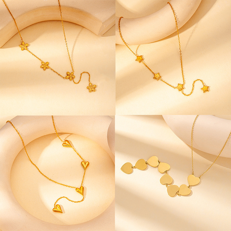 double butterfly pendant necklace, colorful smiley sunflower necklace, love heart-shaped bow tie necklace