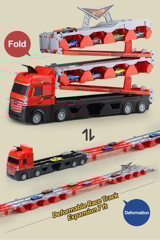 2-in-1 Transforming Vehicle: The massive Mega Hauler can carry more than 12 cars in its six expandable levels! There are even more great features that make this big hauler mega unique— connect and Deformation to track and roll your cars onto a side-by-side race. Layer upon layer, load your favorite cars, lift and go!