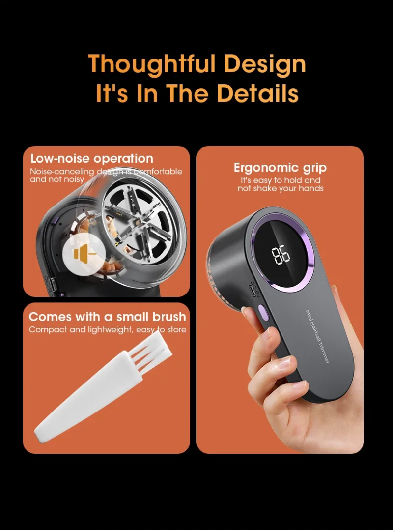 The Portable Electric Lint Remover is a rechargeable fabric shaver designed to remove fuzz, pellets, and fluff from clothing.