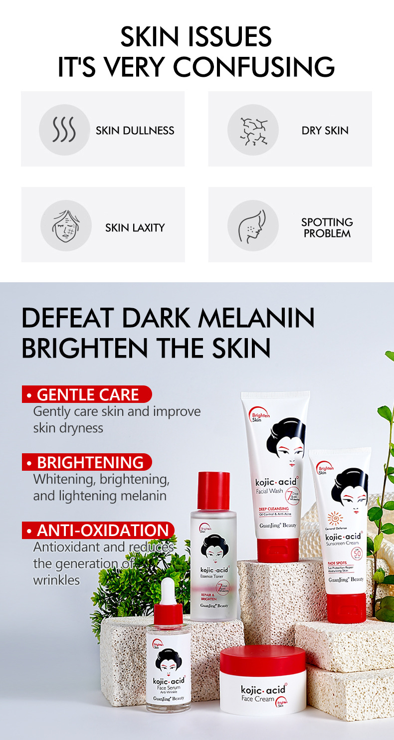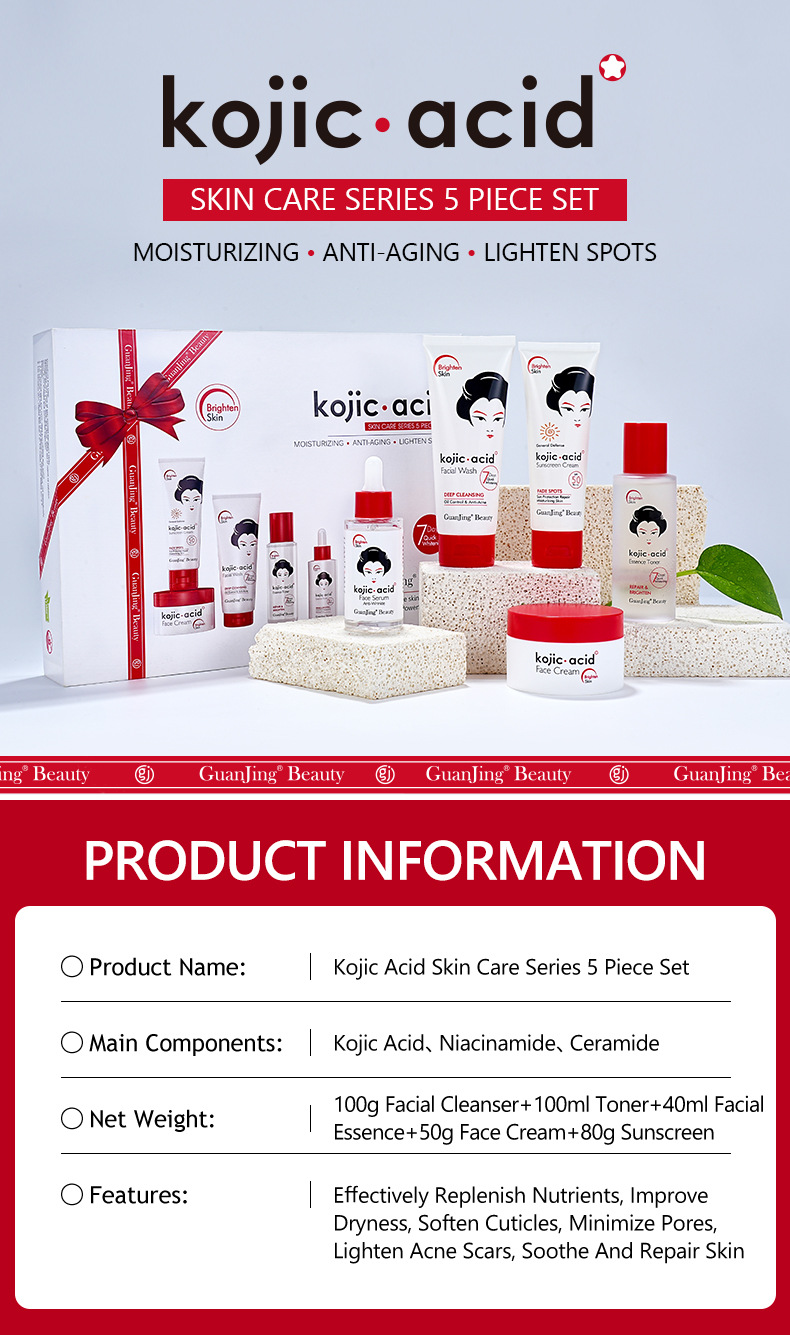 100g Facial Cleanser+ 100ml Toner+ 40ml Facial Essence+ 50g Face Cream+ 80g Sunscreen