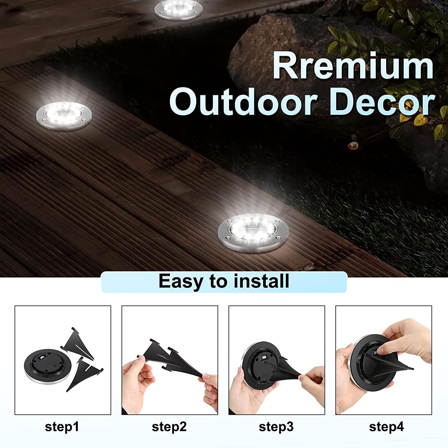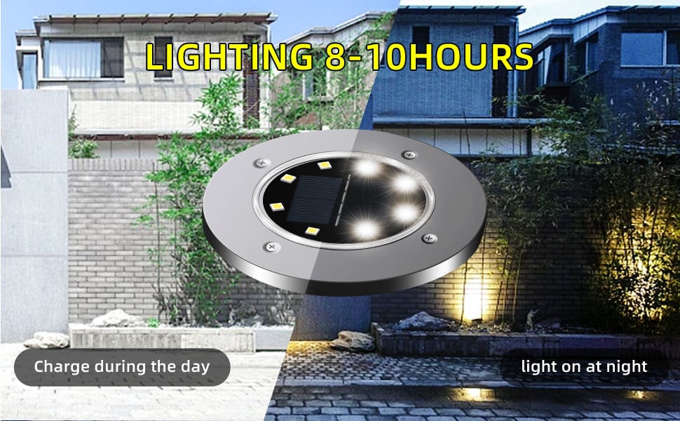 - 💡Solar Garden In-ground Lights: Each solar ground lights has 8 LEDs with a built-in 600 mAh NIMH rechargeable battery, lights will work up to 8-10 hours after fully charged, energy saving and eco-friendly.