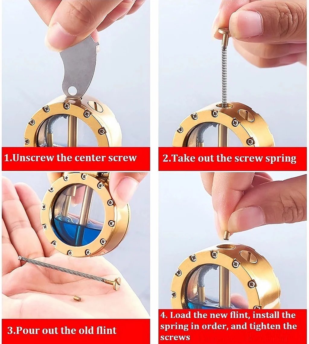 - 🔥【Fluid Refillable Design】Visible transparent tank design, always grasp the fuel capacity to bid farewell to the embarrassment of insufficient fuel. The bottom of Lighter has a oil filler, which can be rotated to open and refill with lighter fluid/fuel. With Rubber pad at the bottom of cover, effectively inhibits leak.